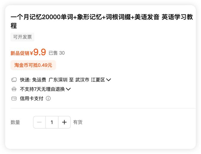 淘宝热卖的精品学习记忆英语课程 一个月记忆20000单词+象形记忆+词根词缀+美语发音英语学习视频