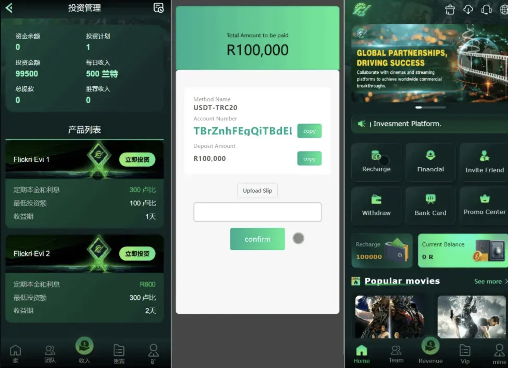 测试环境:Linux系统CentOS7.6、宝塔面板、Nginx、PHP8.2、MySQL5.7,运行目录不用管,伪静态选择Laravel5,建议开启SSL 互换的一套,我以为是什么好东西,结果是一套海外理财盘,搭建好打开首页我就崩溃了。。。 前后端纯英文的一套电影投资理财源码,Laravel框架,可以换成任意产品,不一定非要电影的 带三级分销,后台可以设置充值、提现的渠道,比如虚拟货币/其他货币等 感觉UI还不错,html的前端会略卡,没什么亮点,测试中没发现哪里有bug 截图是用的网页自动翻译成中文,方便看功能,实际页面是英文的 数据库信息修改文件:.env