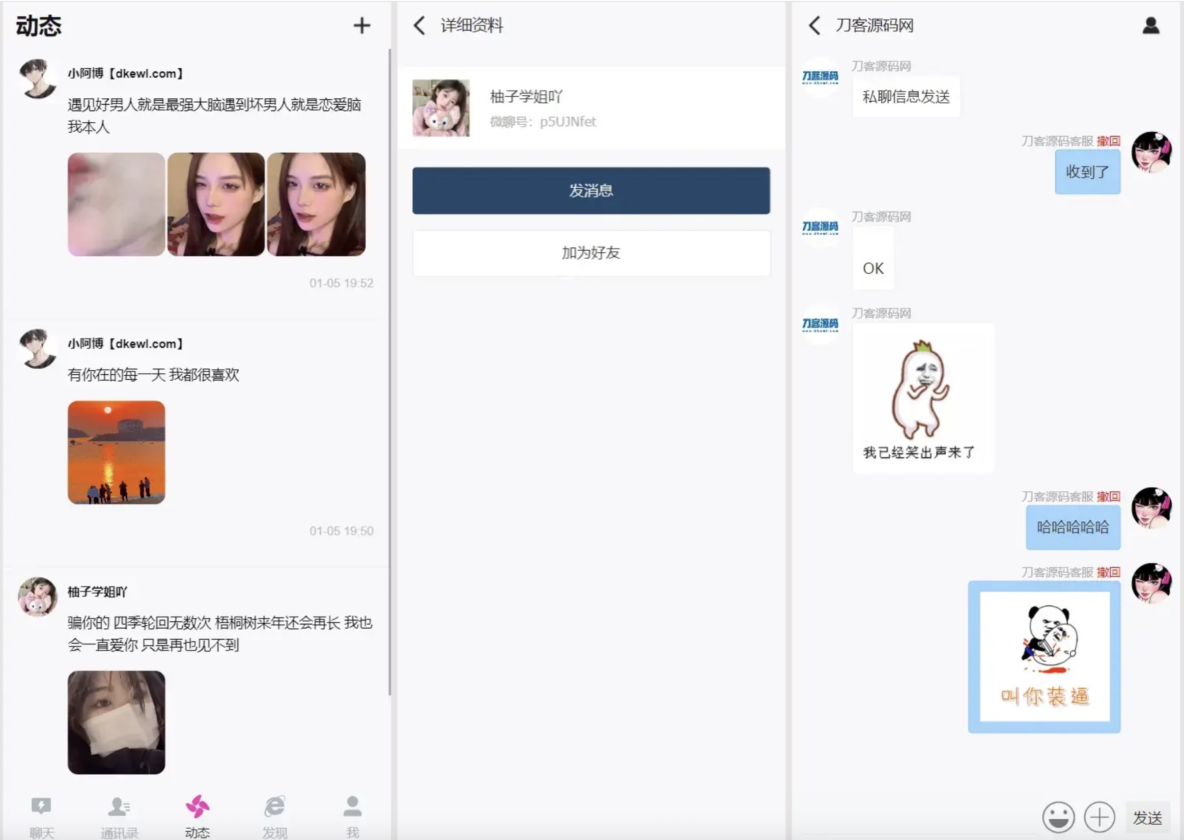简介: H5在线聊天室 即时通讯聊天交友系统源码 全开源 附教程 源码简单测试了,比较不错,功能完整可用,有需要自己下载研究吧 图片
