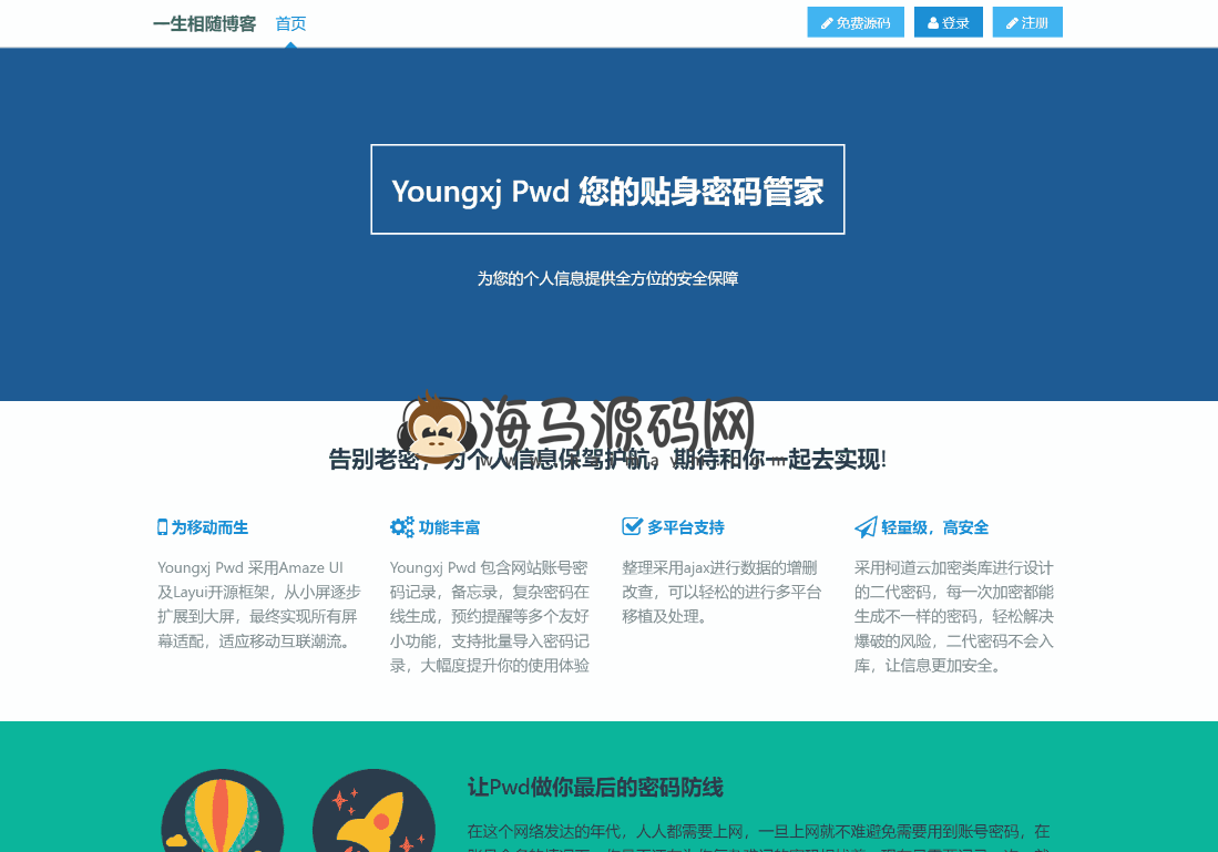 该项目设计之初是为了规避那非常难记的密码,也是为了改变我喜欢使用老密的不良习惯。项目本身难度不大,但是在安全方面,我确实不敢保证100%的安全性,所以这也是一个忧心忡忡的事情,我也希望好的项目能被别人认可,但是我也不敢拿自己及大家的信息去冒险,经过小杰的不谢努力,网站所有参数都会有过滤,尽全力保护用户资料安全。全程也有日志记录跟进,可以及时发现非法爆破等安全事件。 感谢以下开源项目: Amaze UI v2.7.2 | Layui v2.3.0 | jQuery v2.0.3