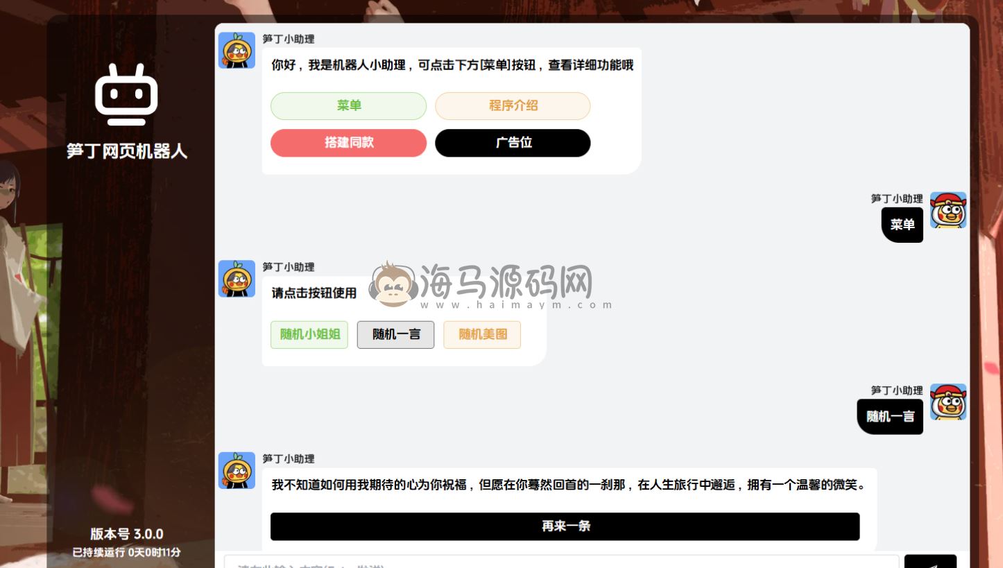 笋丁网页机器人一款可设置自动回复,默认消息,调用自定义API接口的网页机器人。